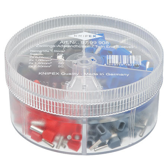 Příruční, průhledná krabice Otočné víko s otvorem pro vyjímání jednotlivých koncových dutinek S izolovanými koncovými dutinkami podle kódu barev DIN Produktové číslo: 9799908 Výrobce: Knipex