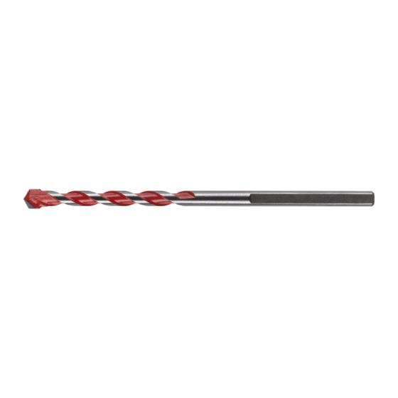 Vrtáky s tvrdokovovými hroty umožňují vrtání do betonu, pórobetonových bloků, zdiva, břidlice a žuly. Od ? 5 mm jsou tyto vrtáky pro příklepové vrtání dodávány s upínací stopkou s 3 ploškami, aby bylo zabráněno prokluzování vrtáku ve sklíčidle. V ? 3 a 4 mm jsou tyto vrtáky pro příklepové vrtání dodávány s válcovou upínací stopkou. Červený žlábek umožňuje snadnou identifikaci vrtáku uživatelem v kufru na nářadí. Mohou být použity v režimu pro příklepové i běžné vrtání.